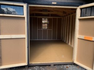 10×12 “Heavy Duty” Peak Front Shed LP Smart Siding- Bronze Trim- Black Roof- Rustic Black Building Number- SG 43025 Contact us for more info *include building number in form