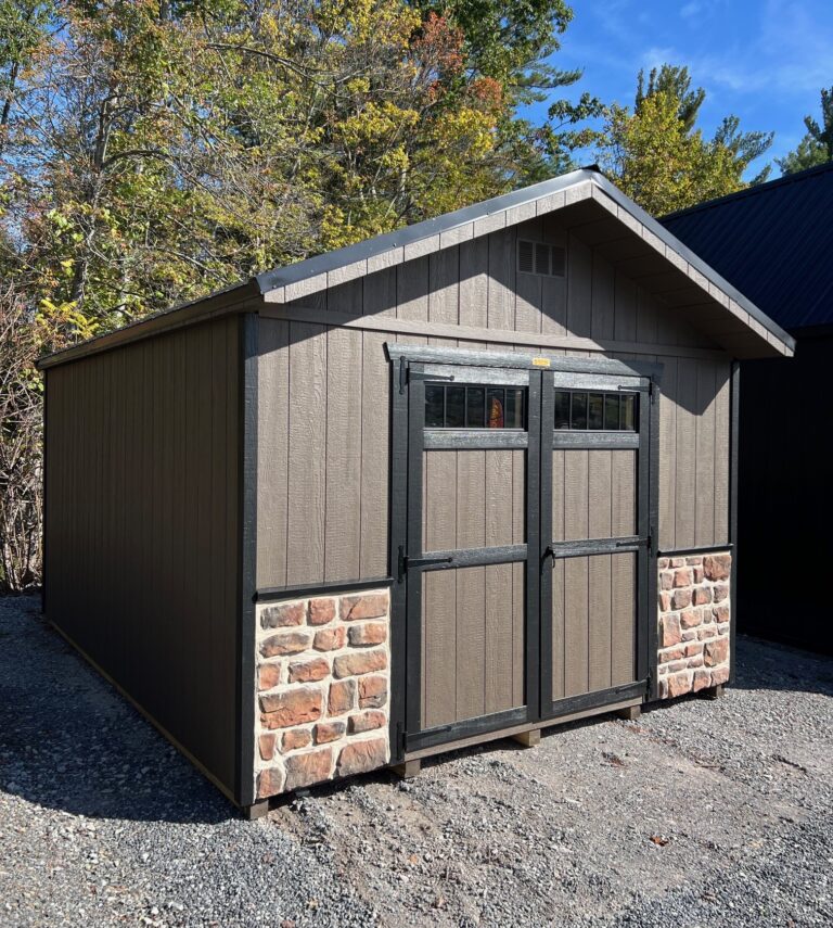 12×16 “Heavy Duty” Peak Front Shed LP Smart Siding- Bronze Trim- Black Metal Roof- Black Building Number- SG 43022 Contact us for more info *include building number in form