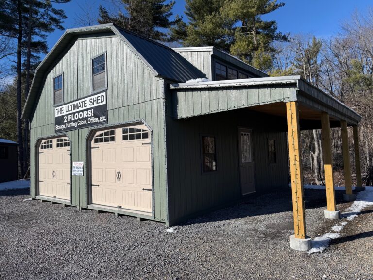 24×24 “Heavy Duty” Two Story Garage T-1-11 Siding- Avocado Trim- Dark Gray Metal Roof- Charcoal Building Number- 10464 Contact us for more info *include building number in form